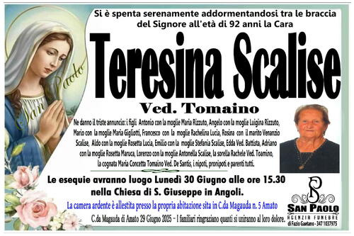 Le esequie avranno luogo Lunedì 30 Giugno alle ore 15.30