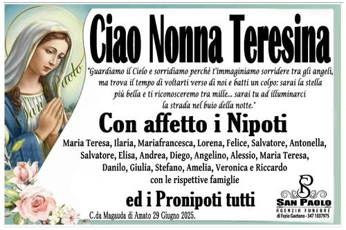 C.da Magauda di Amato 29 Giugno 2025 - I familiari ringraziano quanti si uniranno al loro dolore.