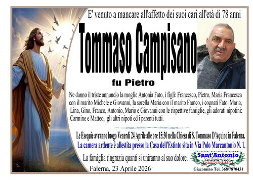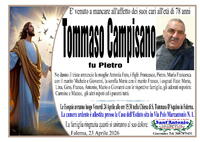 Ne danno il triste annuncio la moglie Antonia Fato, i figli: Francesco, Pietro, Maria Francesca con il marito Michele e Giovanni, la sorella maria con il marito Franco, i cognati Fato: Maria, Lina, Gino, Franco, Antonio, Mario e Giovanni con le rispettive famiglie, gli adorati nipotini: Carmine e Matteo, gli altri nipoti ed i parenti tutti.