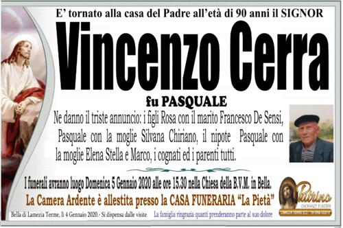 I funerali avranno luogo Domenica 5 Gennaio 2020 alle ore 15.30 nella Chiesa della B.V.M. in Bella.