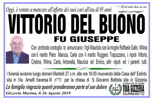 Oggi, è venuto a mancare all'affetto dei suoi cari all'eta di 95 anni
