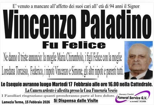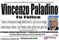 Ne danno il triste annuncio: la moglie Maria Chirumbolo, i figli Felice con la moglie Loredana Torcasio,Federico, i nipoti Vincenzo e Simone, gli altri nipoti e parenti tutti.